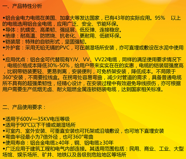 鋁合金電纜:鋁合金電纜ZR-YJLHV 瀏覽:3908